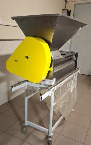 Горизонтальна валкова дробарка – гребневідділювач призначена для дроблення з наступним гребневиділенням будь-яких сортів винограду в домашніх умовах, а також може бути використана в лабораторіях винзаводів. Дроблення здійснюється завдяки валкам, придатним для харчових цілей, спеціальної форми, що виключає пошкодження винограду, зберігаючи його первісний склад та якісні характеристики. Машина виконана з урахуванням таких характеристик як компактність, делікатна робота. Відстань між валками можна регулювати вручну. Конструкція дробарок дозволить легко проводити миття та очищення механізмів. Нержавіюча сталь AISI 304L