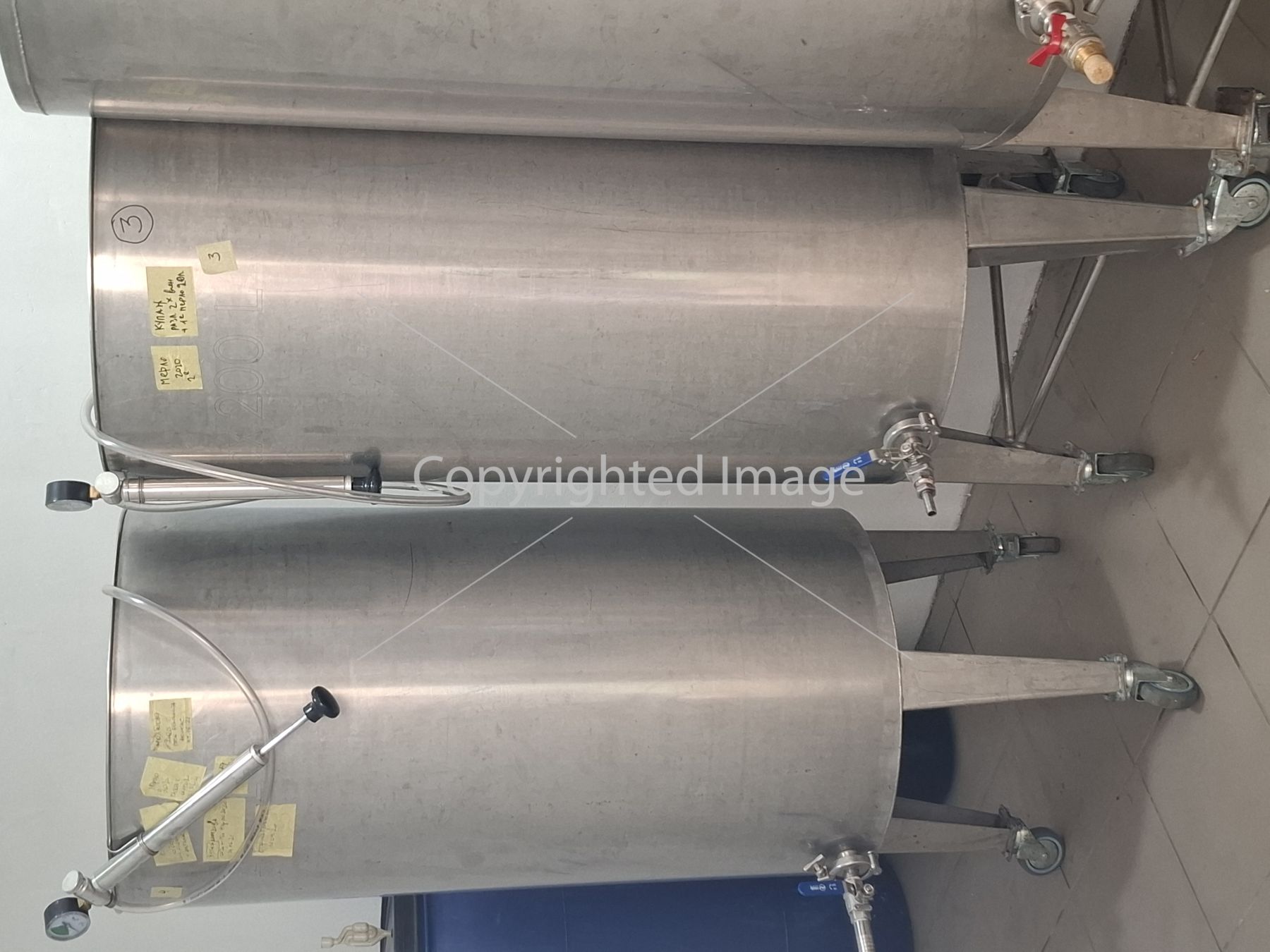 Ємність з нержавіючої сталі AISI 304 L з конічним дном, на опорах, мобільна з плаваючою кришкою 200 літрів