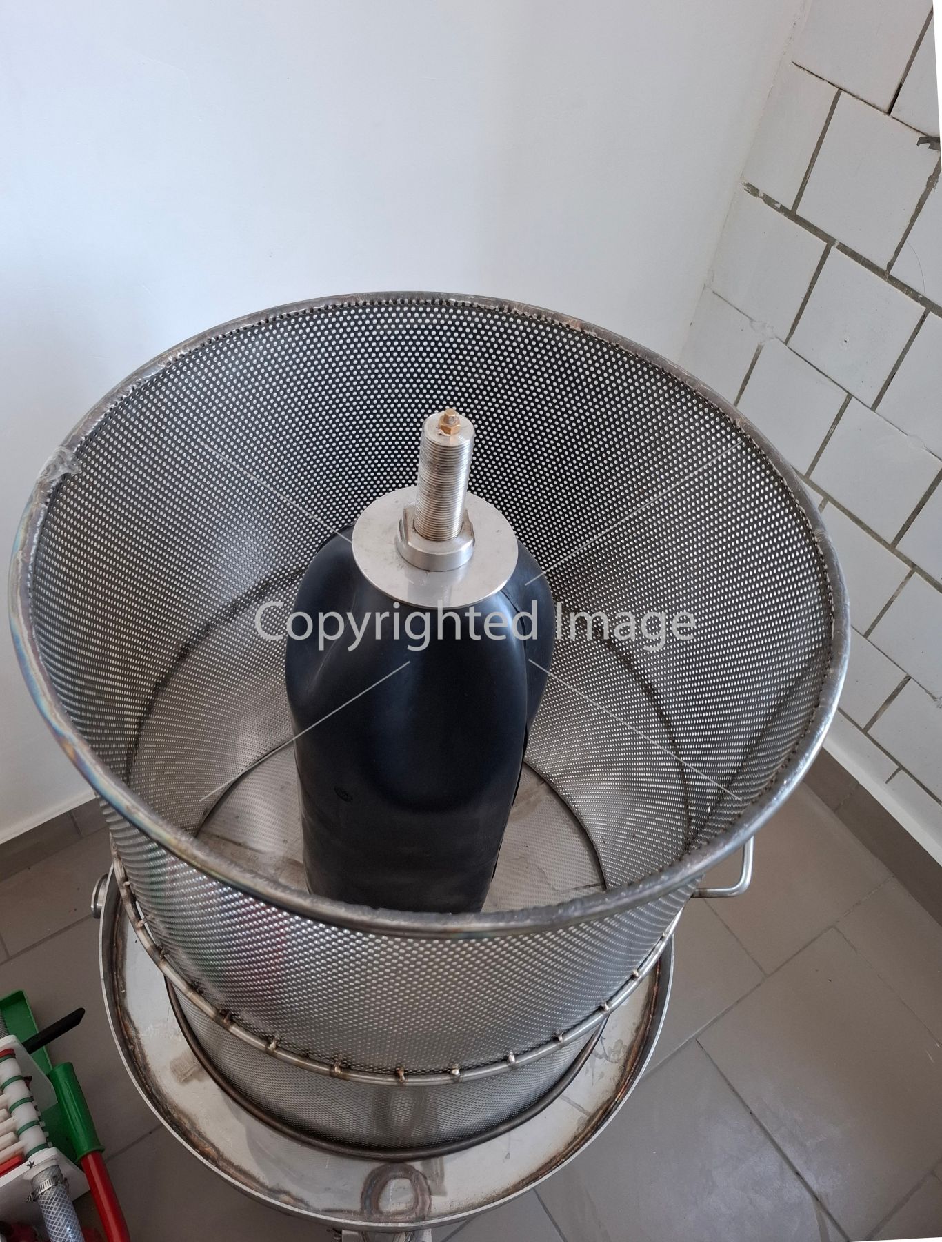 Прес для віджиму виногадної мезги з нержавіючої сталі AISI 304 L. Пневматичний ( штатно) з можливістю переходу на застосування гідравліки ( за допомогою системи централізованого або індивідуального водопостачання)